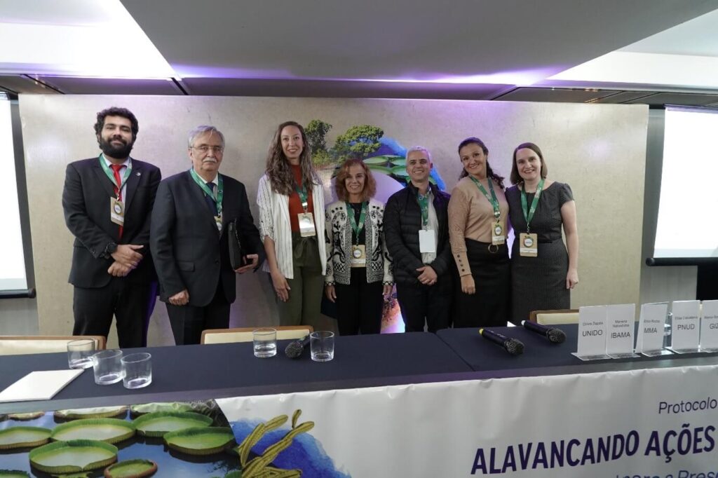 Diversas autoridades prestigiaram o evento, que aconteceu sob a liderança do Ministério do Meio Ambiente e Mudança do Clima (MMA), representado por Érico Rial Pinto da Rocha, Coordenador-geral de Mitigação e Proteção da Camada de Ozônio da Secretaria Nacional de Mudança do Clima (foto acima, no centro), que na oportunidade iniciou seu discurso, na solenidade de abertura do evento, agradecendo o excelente trabalho de toda a equipe de Ozônio e do Clima do MMA e ao Instituto Brasileiro do Meio Ambiente e dos Recursos Naturais Renováveis (IBAMA) pela parceria, além das agências implementadoras do PBH: Programa das Nações Unidas para o Desenvolvimento (PNUD), Organização das Nações Unidas para o Desenvolvimento Industrial (UNIDO) e Cooperação Alemã para o Desenvolvimento Sustentável por meio da Deutsche Gesellschaft für Internationale Zusammenarbeit (GIZ) GmbH.